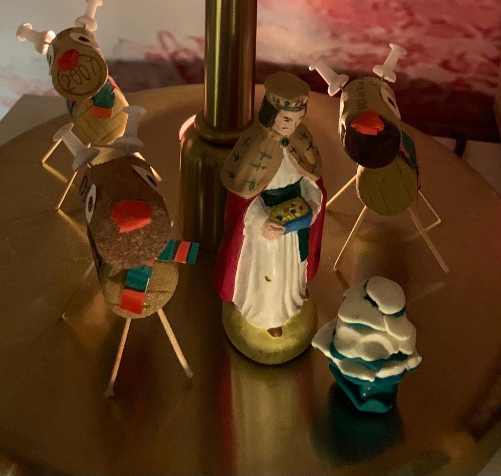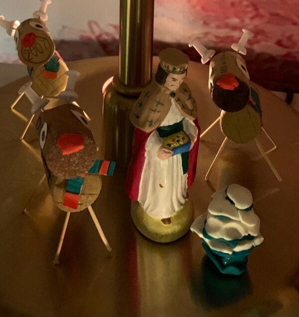 Quelques bouchons joliment recyclés en crèche de Noël ...