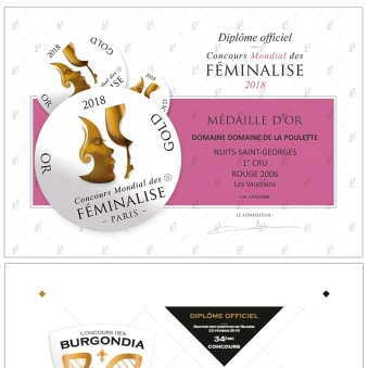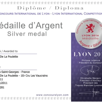Notre Nuits Saint Georges 1er Cru "Les Vaucrains" 2011 a reçu une médaille d'argent ...